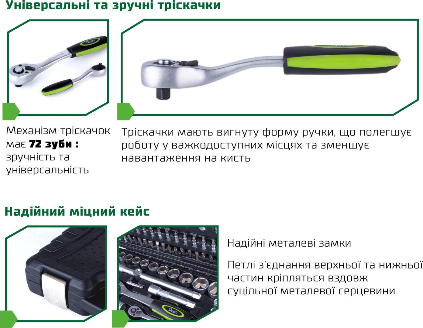 - Механізм тріскачок має 72 зуби - більше зручність та універсальність застосування